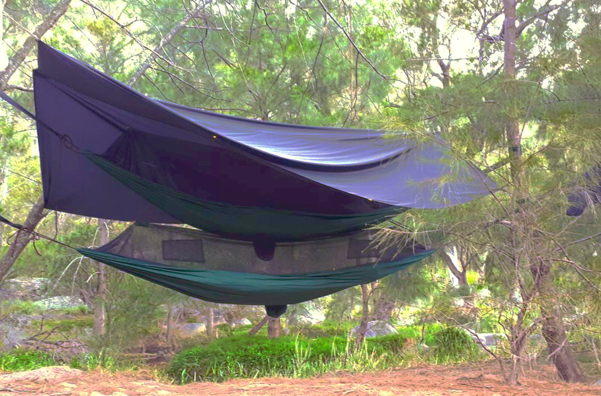 Stay dry in your hammock in rainy conditions, block out the sun or protect your gear from the elements - Six Attachment Cords:
